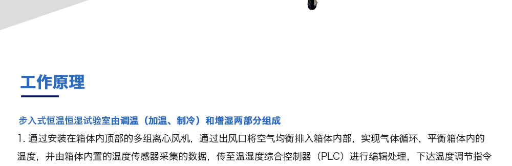 用途:步入式恒溫恒濕試驗室可為汽車、大型部件、大尺寸半成品和成品模擬特定的環境條件。如樣品評估、研發測試生產測試,加速壓力測試,可靠性測試,故障分析,以及其他需要環境模