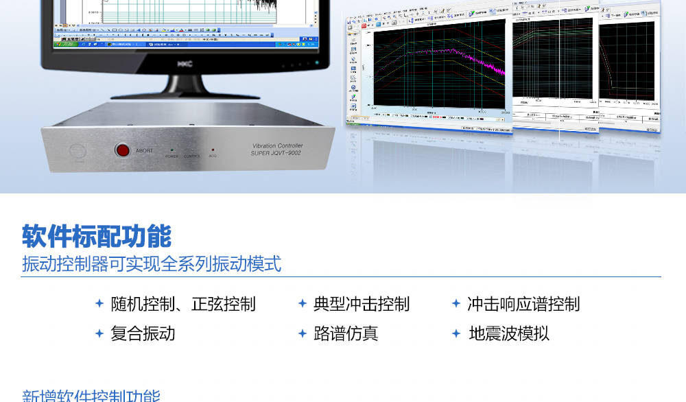 用途:振動控制器可實現(xiàn)全系列振動模式,包括隨機控制、正弦控制,典型沖擊控制、沖擊響應譜控制、復合振動、路譜仿真以及地震波模擬。同時,為了進一步創(chuàng)新振動控制技術,以適應更